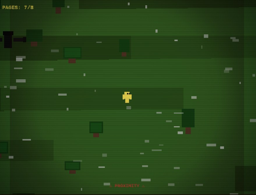 Retro style Slenderman game. Collect 8 scrolls, avoid getting caught by Slenderman. WASD to move around.