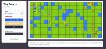Tiny Empire brings the depth of classic 4X strategy into a streamlined, fast-paced tactical experience. Set on a dynamic 20x10 battlefield, you begin with a single capital and a modest treasury. Your mission is simple but challenging: infiltrate the enemy's territory and dismantle their defenses to capture their capital.